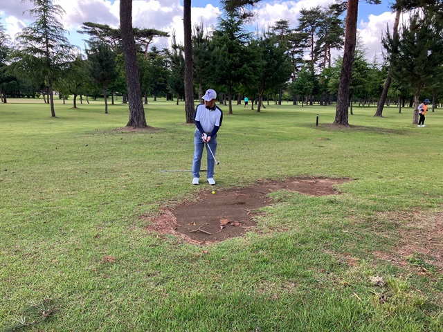 前方の木が邪魔で5Wで左目に打つも木に当たりボギーがやっと。