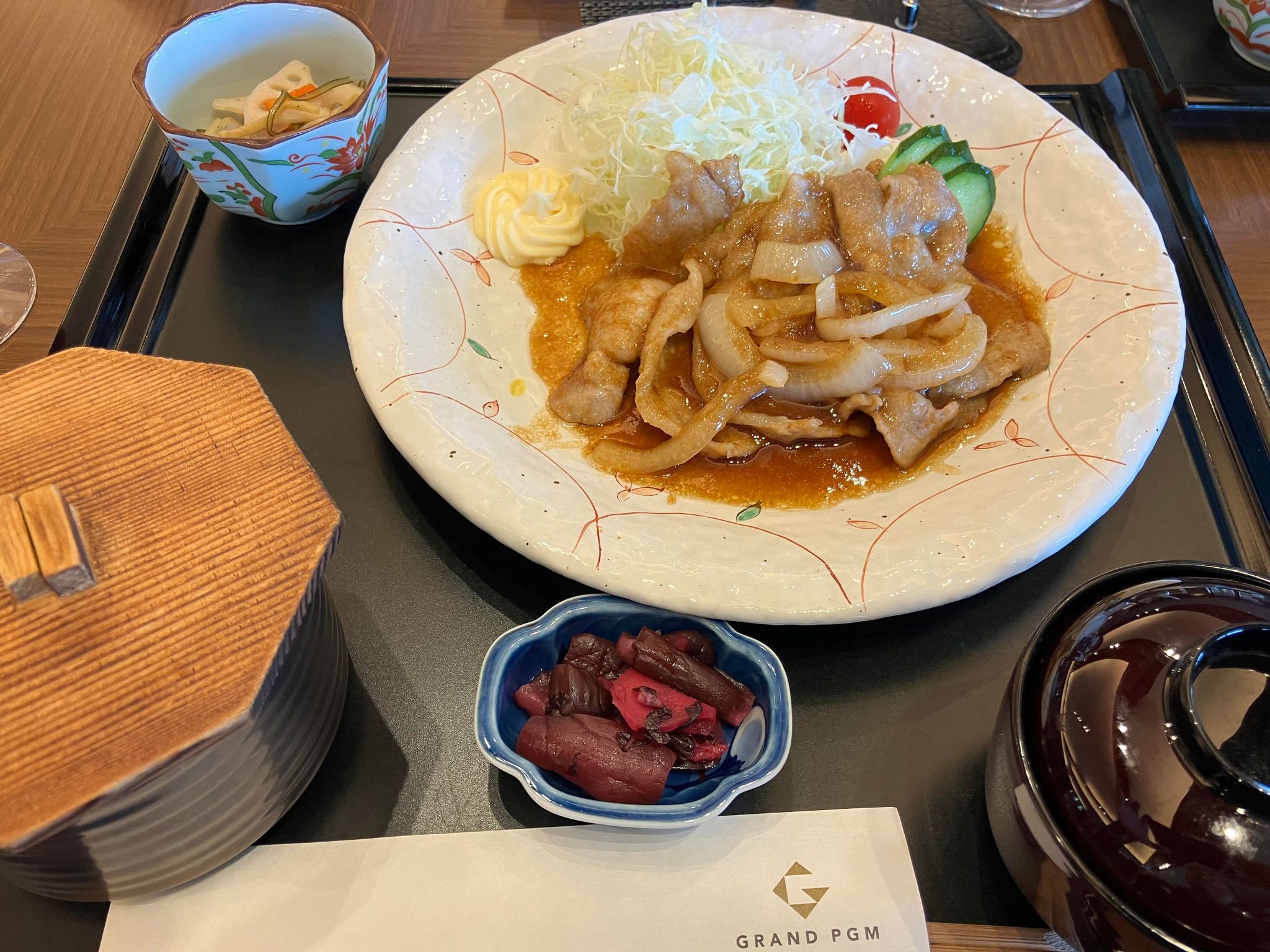 ランチは豚の生姜焼きをオーダー、2000円は高いが味は良い。