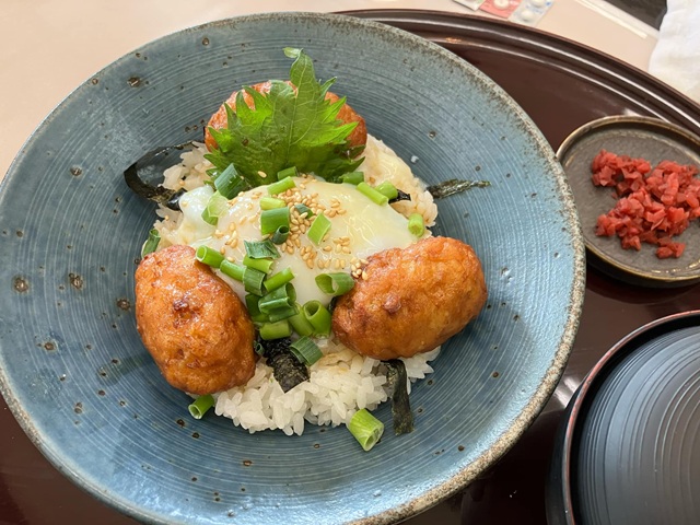 やっとランチタイム、好物つくね丼で気分をあげる。
