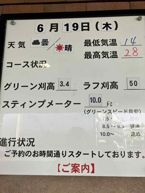 | イン | 10 | 11 | 12 | 13 | 14 | 15 | 16 | 17 | 18 | 合計 |