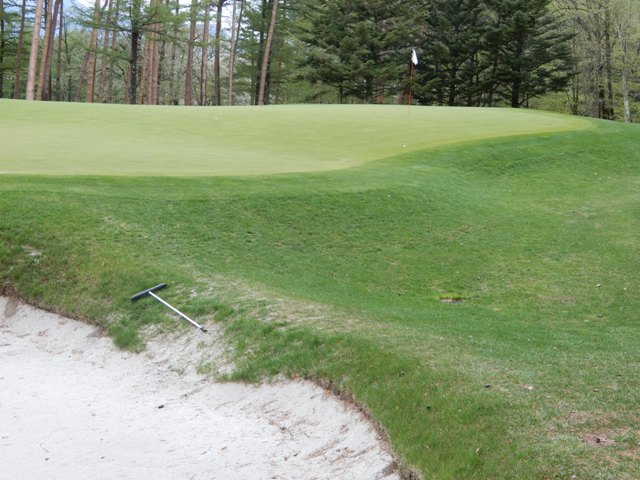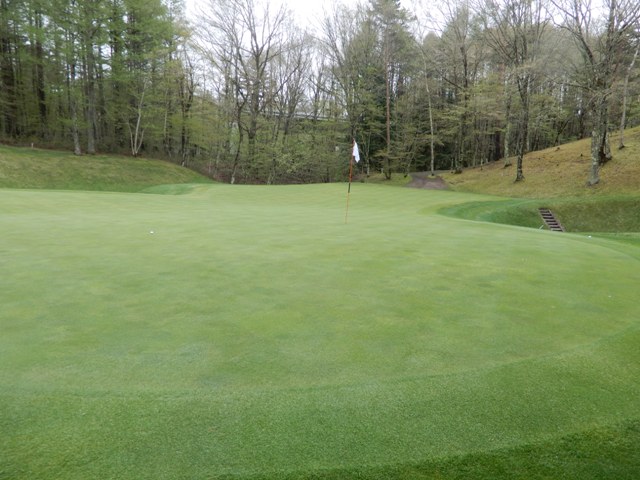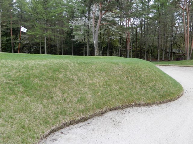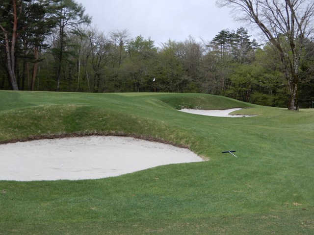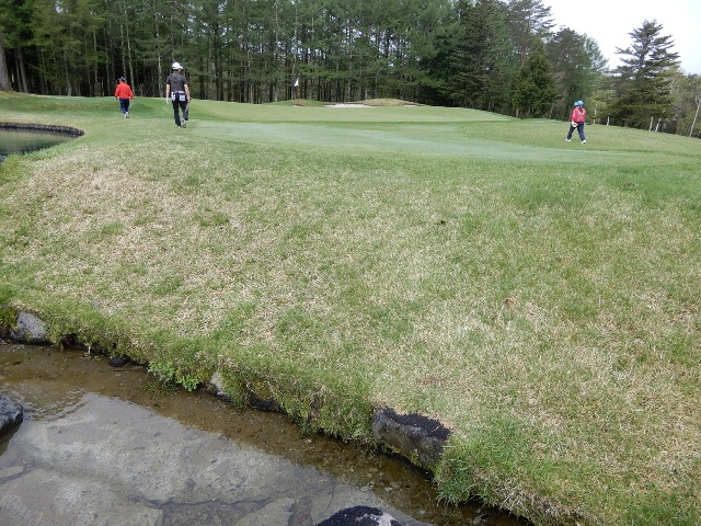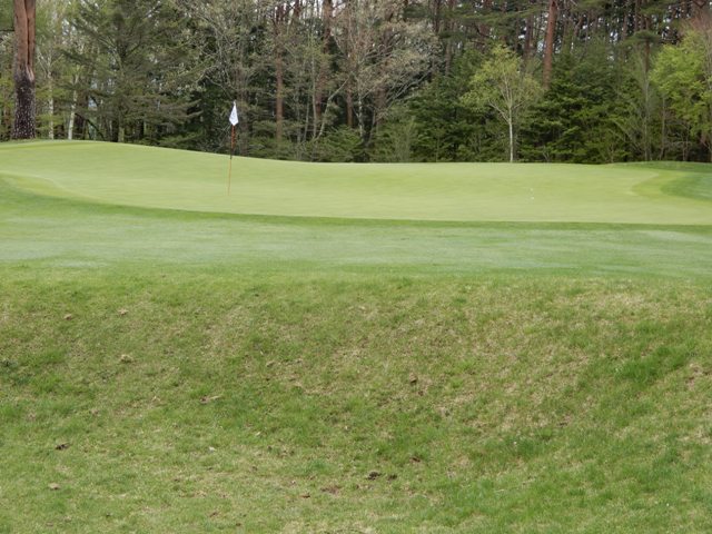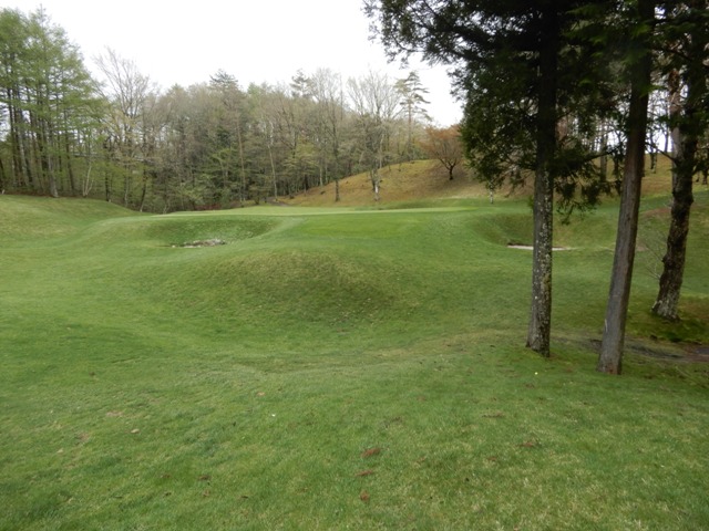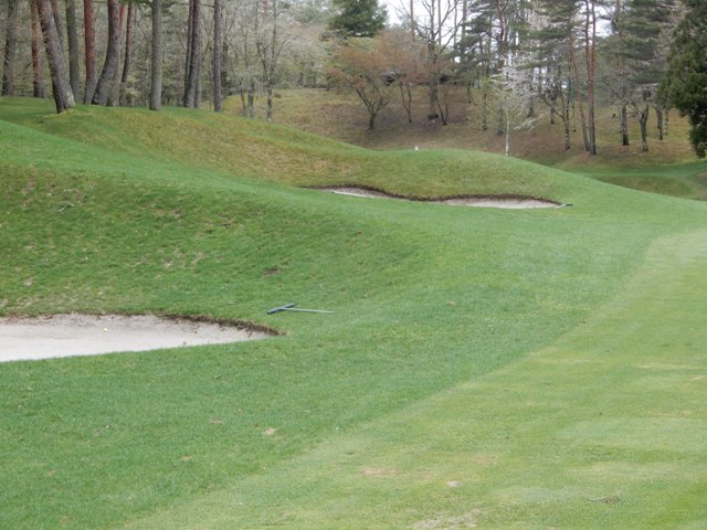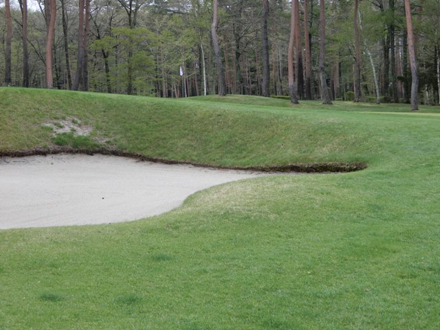 まず、刻んでいくにしろ、ティーショットの精度を要求されるように思いました。林に打ち込んでしまうことも多かったです。林内もよく剪定されていており、微妙に空間があるのですが、ちょっと欲を出して、さらに嵌まってしまうこともありました。 さらに、洋芝なので、私のようなすくい打ちゴルファーはダフリやすいです。