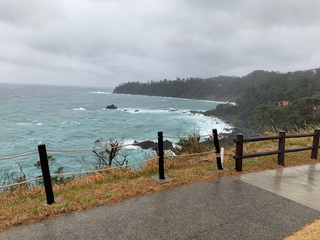 和食ダイニングでお待ちの縁の埼玉県のJ.Oさんをお迎えに上がり、チェックインです。10時には雨が上がるという予報ですが、どうなんでしょうか?とにかく、風が強烈です。