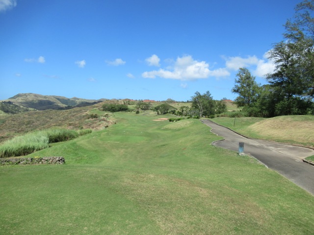 9番527yロングは、ドライバーは右ラフへ。3uで打つもチョロ。3打目を5アイアンで狙うも右へ。寄らず入らず。しっかり3オンのR.Tさんが無難にパー。3ダウン。