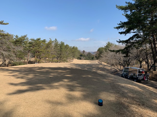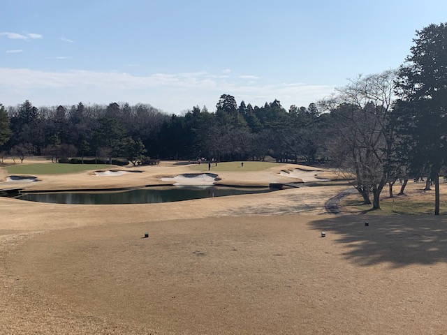 14番355y左ドッグのミドルは、ドライバーは右へ。3uで打つもショボ。3打目がトップ。4打目がザクッ。5オンの7となる。ヘナヘナへナ。しっかり2オンのM.HさんとK.Hさんが無難にパー。