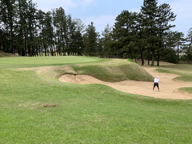6番381yミドルは、ドライバーはヘナチョコ球。残り175yの上りを3uで打つも身の丈3倍のバンカーイン。スパンとナイスアウト。が、6mショート。ボギー。