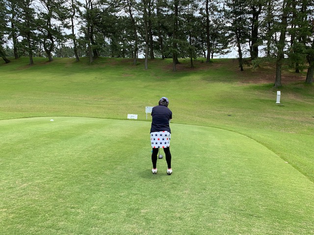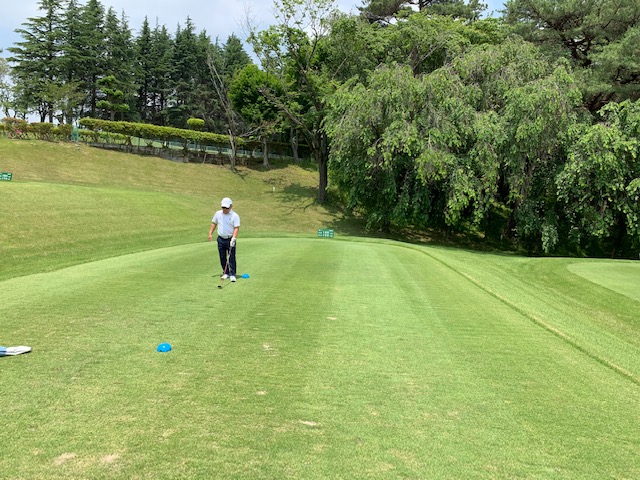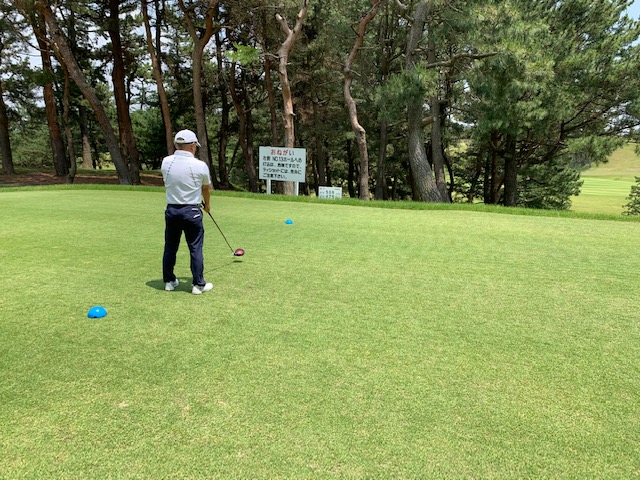 パター時間がなく、西アウトから。今日は短めのBグリーン使用でバックティから参ります。