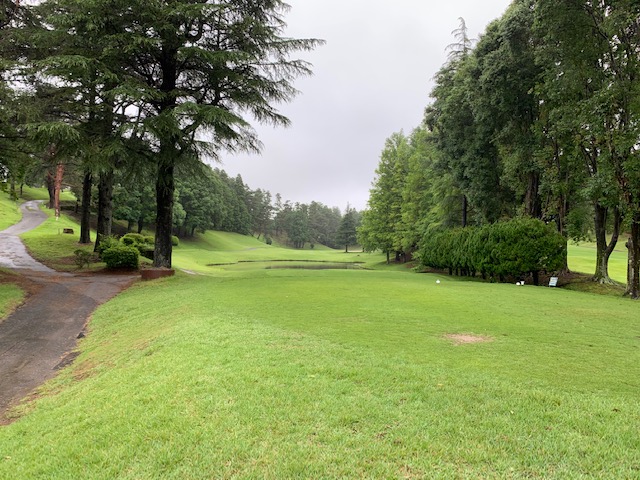 1番518y左ドッグのロングは、ドライバーはヘナチョコ球。3wでコーナー奥のラフへ。傾斜地から7アイアンで打つも花道へ。ショボアプでボギー。