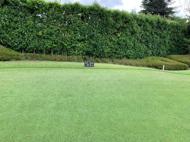 5番550yと続いてとなるロングは、ドライバーはまずまず。3wでのセカンドは竜巻球。が、ネットに当たって大きく跳ねてセーフ。残り180yからの25度のuが最高で8mに3オン。無難にパー。ラッキーでした。