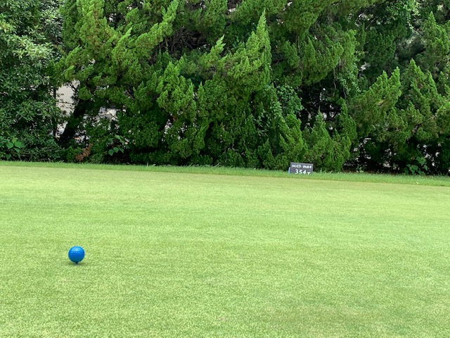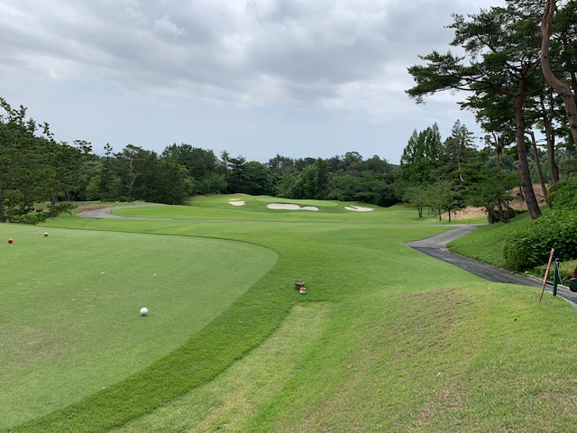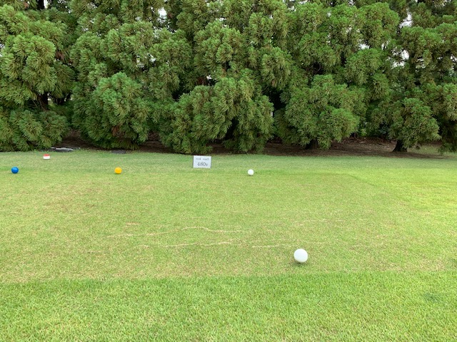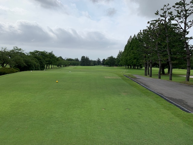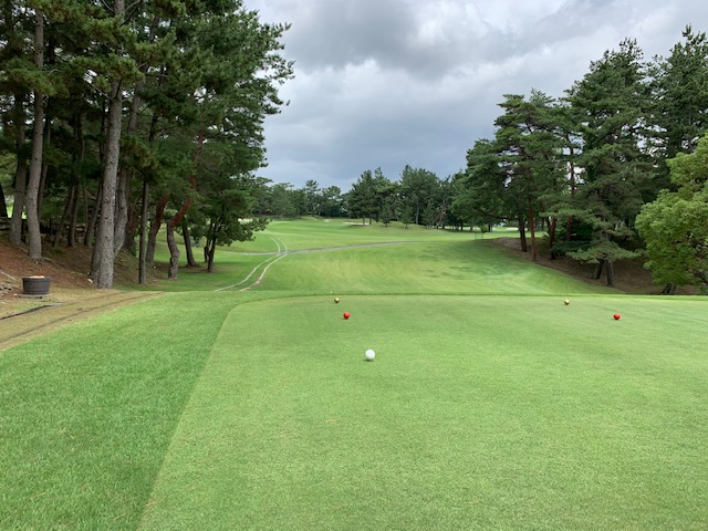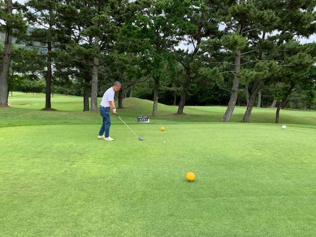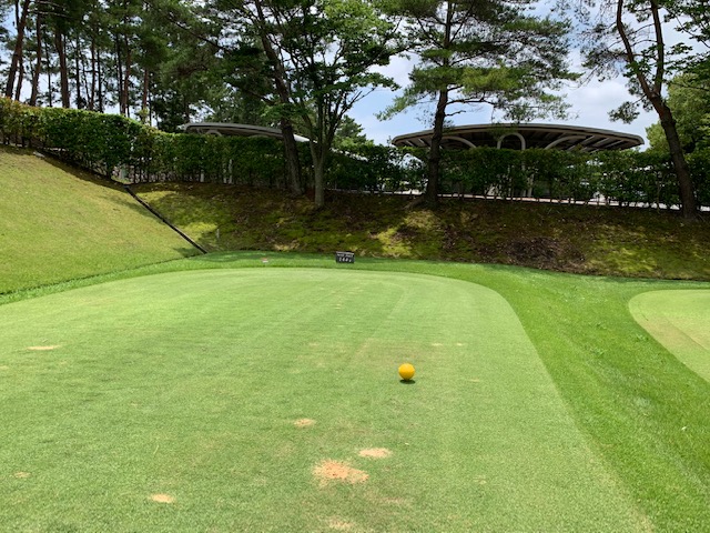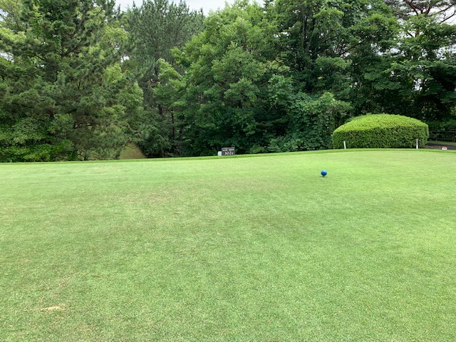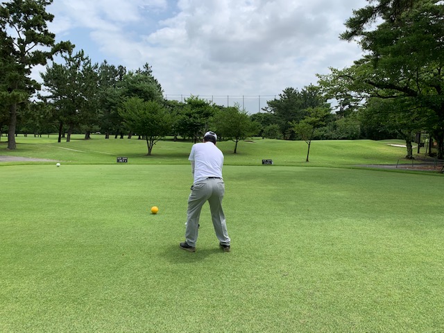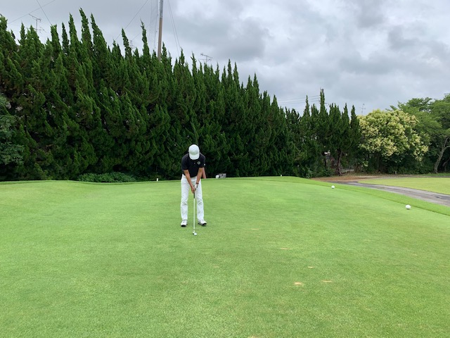 パターを転がして、アウトから。ここはバックから6,201yですが、今日はレギュラーティ6,007yで進行します。