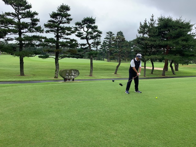1番419yミドルは、ドライバーは左のラフへ。6アイアンで残り60yへ。56度で10mに3オン。3パンチダボ。素晴らしいアプからH.Oさんがナイスパー奪取。1ダウン。