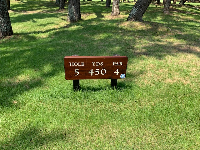 2番517yロングは、ドライバーは完璧。3uがちょいと右へ。52度での3打目は奥のカラーへ。なんとかパー。イーブン。