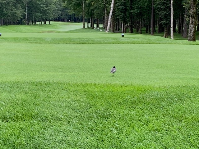 9番372yミドルは、ドライバーは竜巻球。林から6アイアンで残り70yへ。52度で3オン。ボギー。素晴らしいドライバーとナイスセカンドで1.5mに2オンとしたN.Wさんがこれを放り込んでバーディ奪取。スゲー!