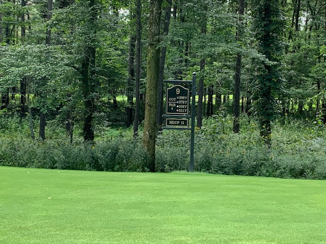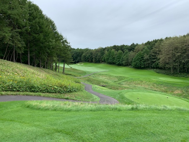 12番軽い左ドッグの373yミドルは、ドライバーは右ラフへ。7アイアンで打つも右へ。寄らず入らず。素晴らしいアプ&パターでJ.Oさんがパー。