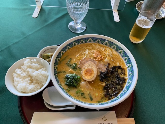 シャワーを浴びる前にレストランへ。で、黄金水と味噌カレーラーメンを食す。味噌ラーメンにすれば良かった。。。