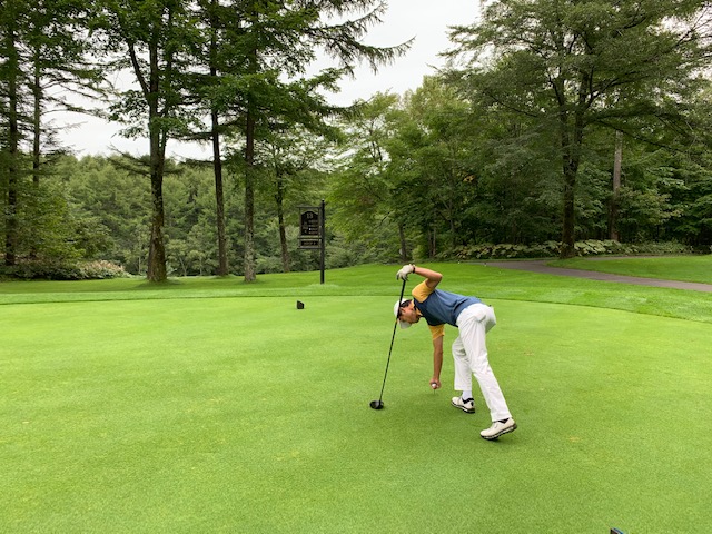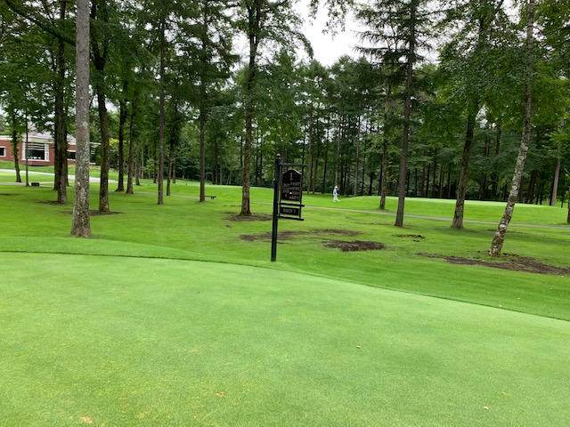パターを転がして、今年は青ティで進行します。黒はダメでした。。。インから。