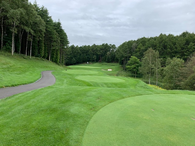 13番420y軽い右ドッグのミドルは、ドライバーはまずまず。3uで打つも左に曲げる。アプがショボく12mに。3パンチダボ。見事なアプからN.Wさんがパー。