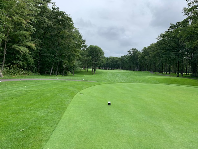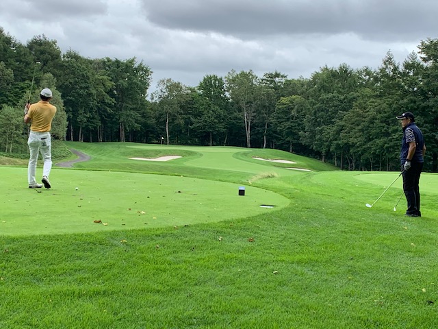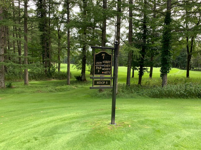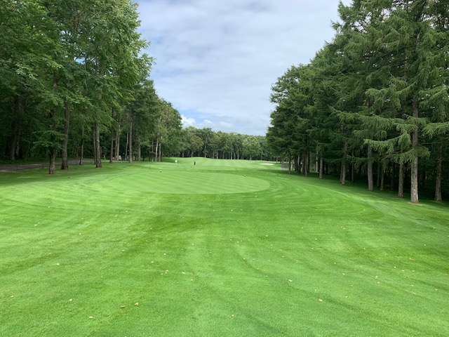 7番548yロングは、ドライバーは右へ飛ぶ。6アイアンで林の間を狙うもカーン。ショボを繰り返し、5オンのダボ。見事な3オンからN.Wさんが無難にパー。また、ナイスアプからJ.Oさんもパー奪取。