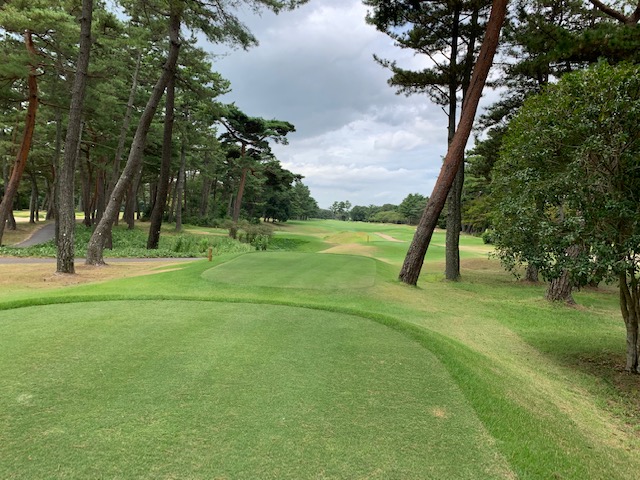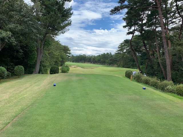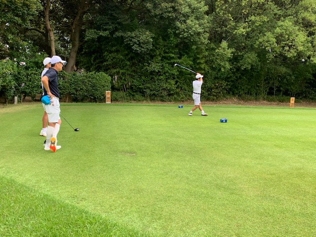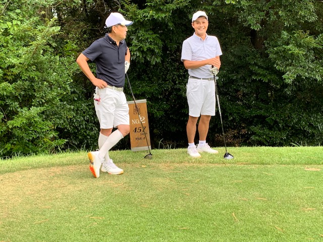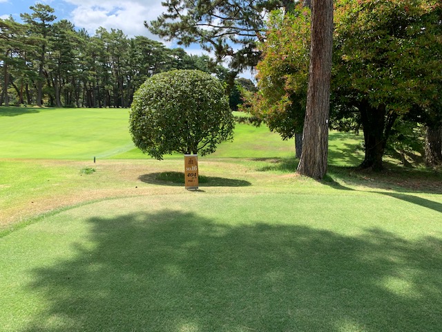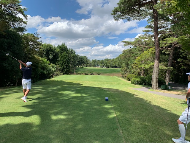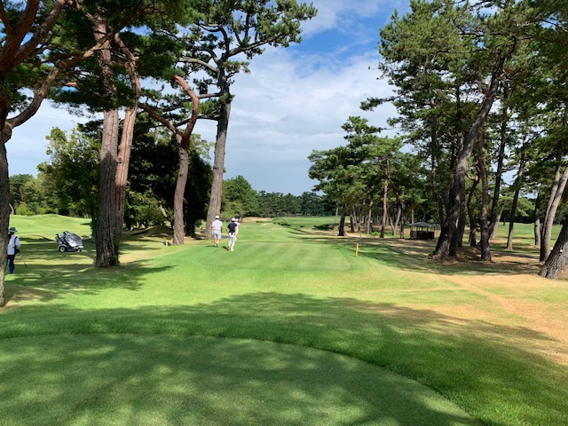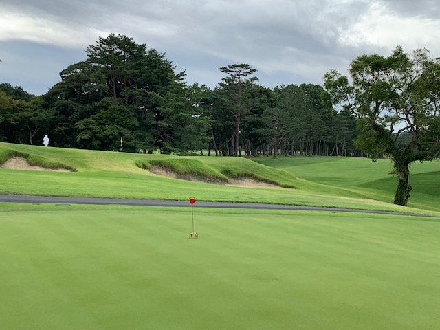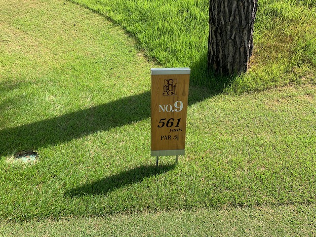 8番356yミドルは、ドライバーはナイス。この距離はホッとしますね。PWで奥6mに2オン。無難にパー。同じく6.5mに2オンのY.Nさんも無難にパー。素晴らしいパター力でH.Kさんも鉄パー。