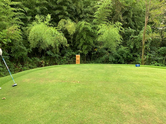 9番561yロングは、ドライバーは竜巻球。捜索するのに難儀したが、なんとかY.Nさんが見つけてくれました。ありがとう。6アイアンでフェアウェイへ。残り185yから3uで左のカラーへ。パターで寄せて鉄パー。奥10mに3オンの東京都のT.Mさんが無難にパー。