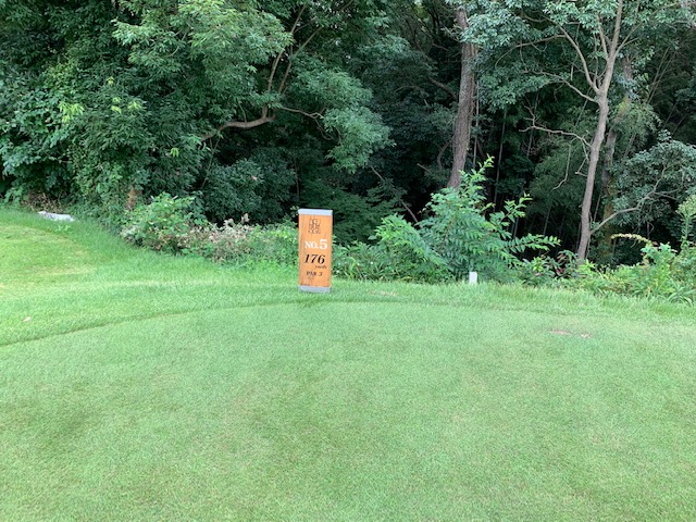 4番461yミドルは、ドライバーは左ラフへ。3wで打つもテンプラ球。残り80yからの52度が大オーバー。寄らず入らずダボ。見事な2オンからY.Nさんが無難にパー。これまた素晴らしいアプからH.Kさんが鉄パー。