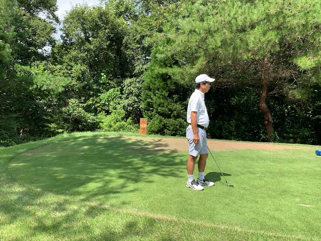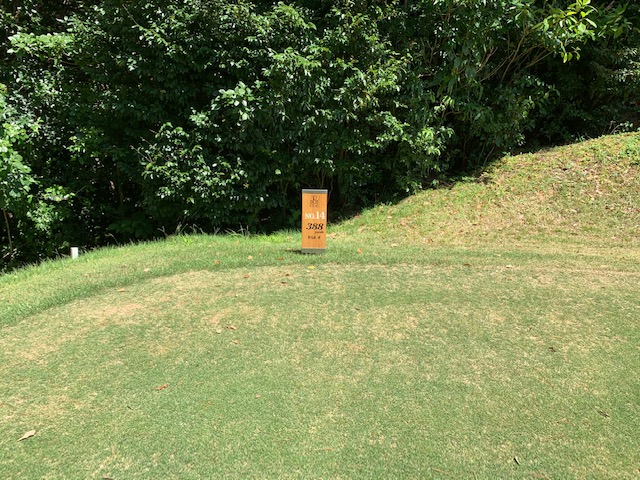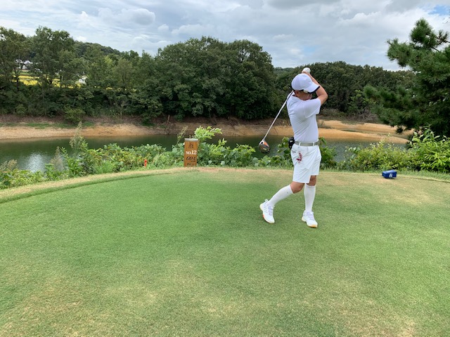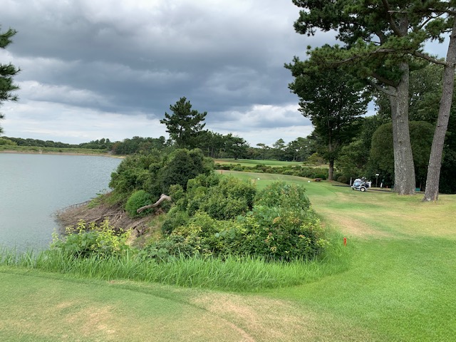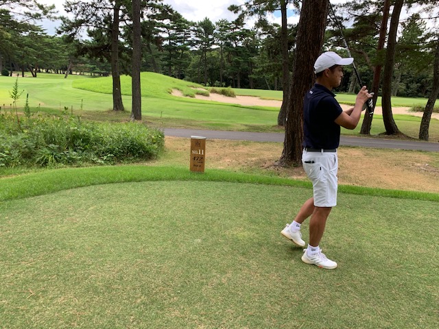 12番604yロングは、ここも距離が伸びましたね~。ドライバーはまずまず。が、3wでのセカンドがショボ。3打目はザクザク。4打目でなんとかフェアウェイへ。5オンのやっとのボギー。この難易度抜群ホールをしっかり3オンさせたY.Nさんが無難にパー。