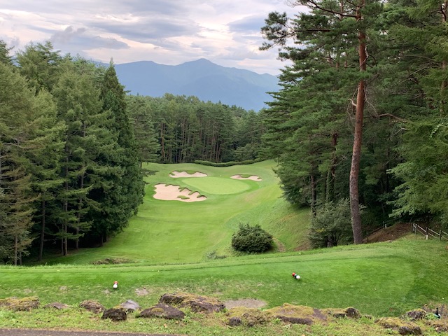 8番185y打ち下ろしショートは、7アイアンでピン手前7mに1オン。無難にパー。