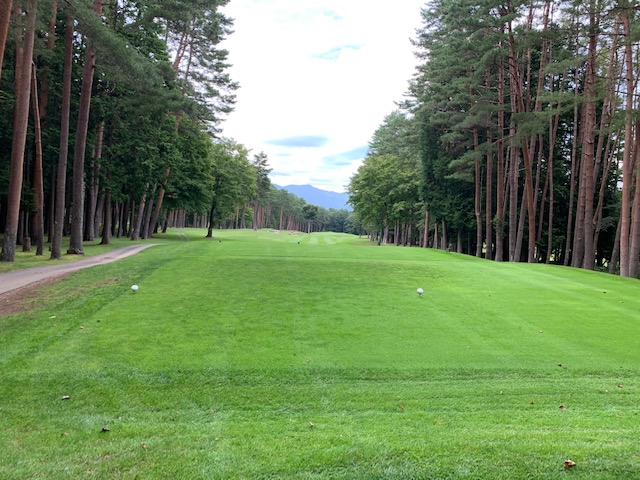8番365yティグランドからの眺めが素晴らしいミドルは、ドライバーはまずまず。PWで9mに2オン。無難にパー。同じく2オンのM.Tさんも無難にパー。