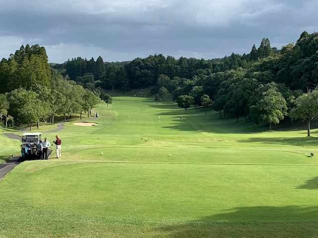さて、東、アウトから2サムで進行します。トーナメントティ7,324yは流石に恐れをなし、ブラック7,107yで進行します。