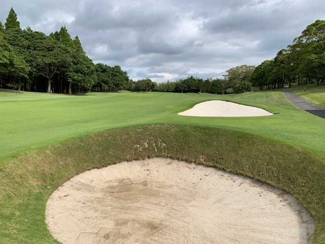 16番224yショートは、渾身の力で打つも手前の深いグラスバンカーイン。モジャモジャだ。これぞグラスバンカーだ。超難しい。10mオーバー。しょうがないなー。ボギー。