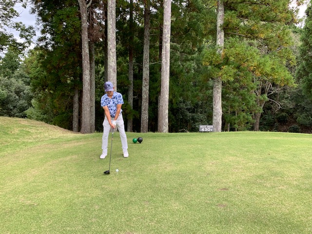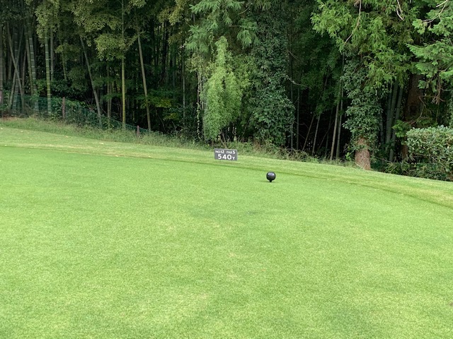 12番540yロングは、ドライバーは左ラフへ。すっぽりです。7アイアンでフェアウェイへ。残り206yを3wでナイスボール。グリーン脇から寄せてパー。パーを取るとホッとするわ。