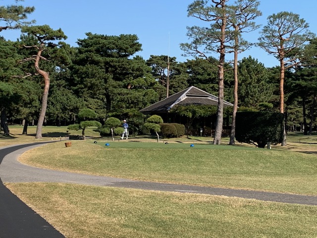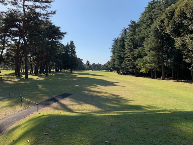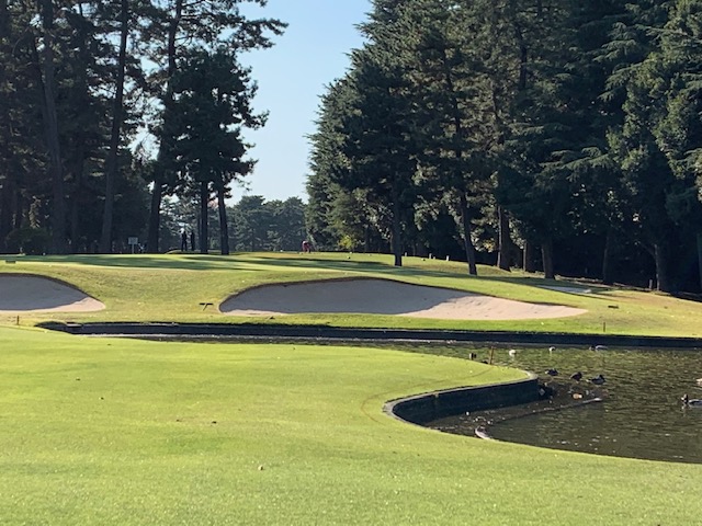 9番460yロングは、ドライバーはナイス。3uで残り90yへ。58度で手前7mに3オン。無難にパー。同じく3オンからT常務理事も無難にパー。