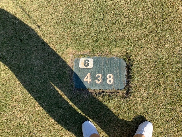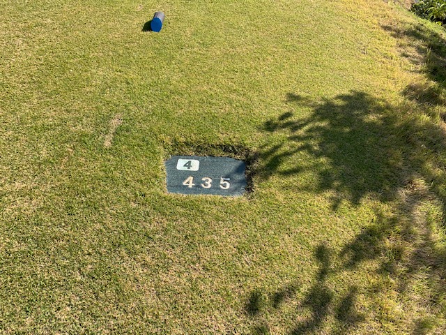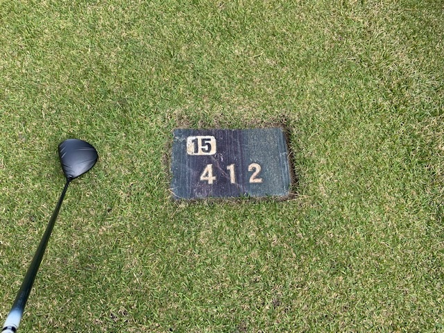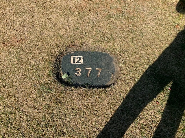 12番377yミドルは、ドライバーはショボ球で右ラフへ。残り180yから4アイアンで打つもショボ。寄らず入らず。