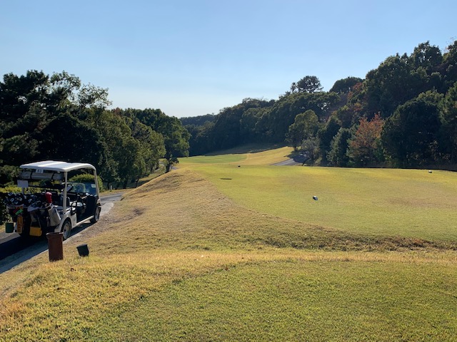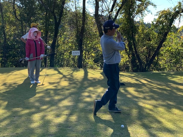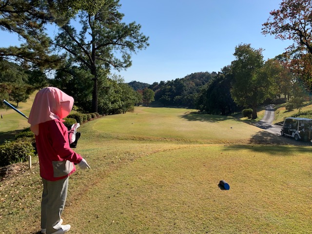11番谷越え172yショートは、5アイアンで打つも右に外れる。見事なアプでS.Mさんが連続のパー。