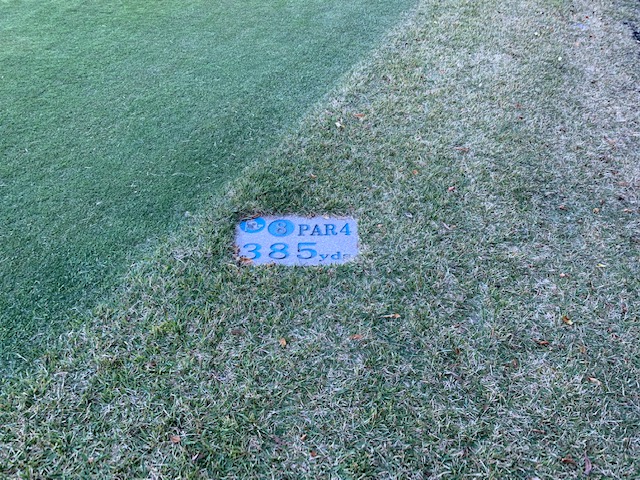 9番530yロングは、ドライバーはアゲンストの中まずまず。3uで残り185yアゲンストへ。再び3uで打つもテンプラ球。4mに4オン。入らずボギー。