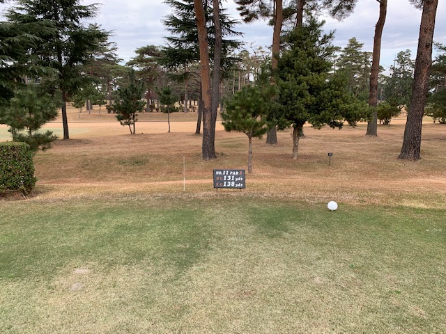 11番130yショートは、9アイアンで打つもちょいと左へ。なんとか寄せてパー。見事なアプからご主人のY.Tさんがパー奪取。