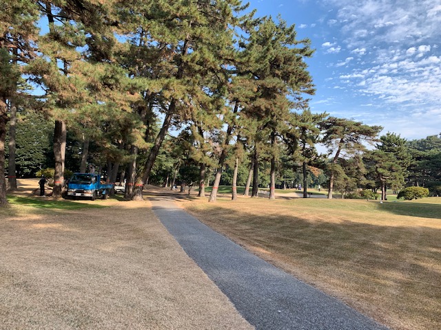 13番503yロングは、ドライバーは左ラフへ。6アイアンで右ラフへ。PWで打つもショート。あまり寄らなったがパターがナイスでパー。しっかり3オンのK.Hさんが無難にパー。