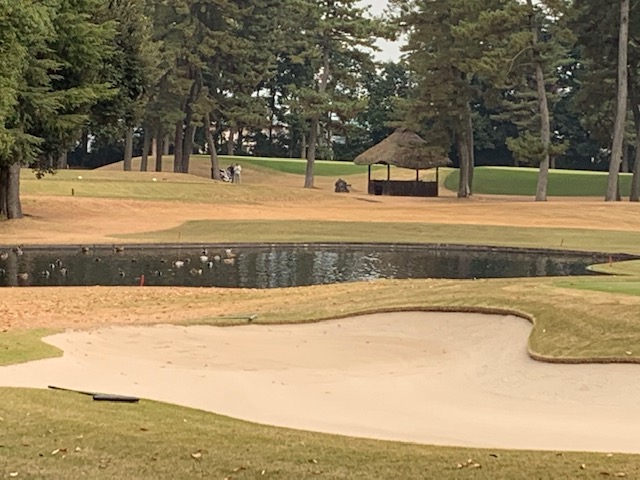 2番363yミドルは、ドライバーはショボ球でバンカーイン。8アイアンがチョロ。3打目がトップ。ダボ。しっかり2オンのK.HさんとY.Oさんが無難にパー。