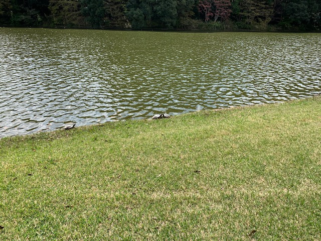 10番492y左ドッグのロングは、ドライバーは竜巻球でお池に。ドロップして3打目をなんとかフェアウェイへ。が、チョロチョロを繰り返し、7とします。