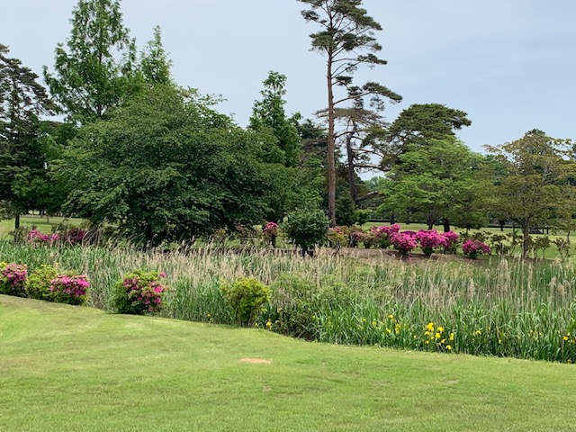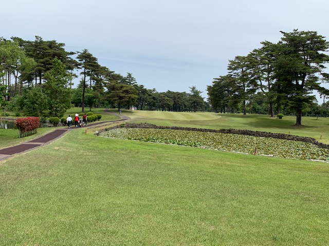 4番370yミドルは、ドライバーは左ラフへ。7アイアンでピン左8mに2オン。無難にパー。素晴らしいアプからK.Kさんもパー奪取。