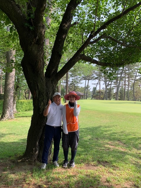 まずは、腹ごしらえからです。今日のシニア出場者のJ.Nさん、競技副委員長のS.Kさん、そして、縁のA.Iさんのテーブルに混ぜて頂き、和朝食をいただきます。その後、パターを入念に、また、スタート1番の脇でチップ練習をし、マッチ4組目でスタートします。対戦相手は一度廻らせていただいているS.Wさんです。キャディはSさんです。