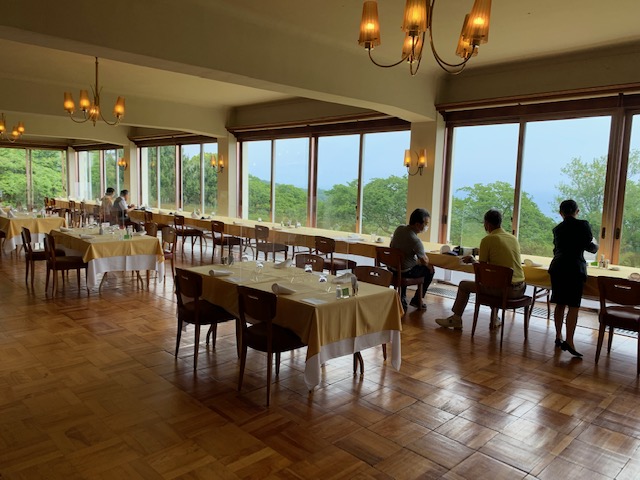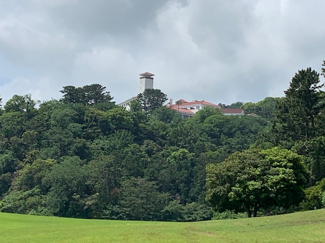 で、8時半過ぎ、サザンクロスをチェックアウトし、川奈へと向かう。10分で到着。ここ川奈ホテルに9泊する縁のM.Cさんと合流。まずは、お買い物タイム。その後、チェックインし、レストランへ行き、瓶ビールを3人で飲む。で、時間になり、バスで1番ティへと向かう。再び、缶ビール。