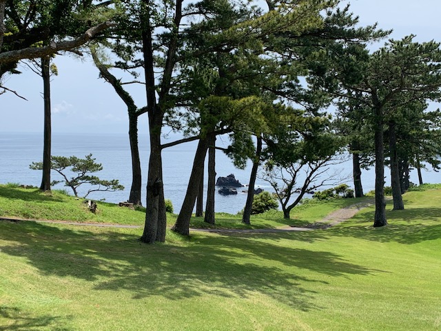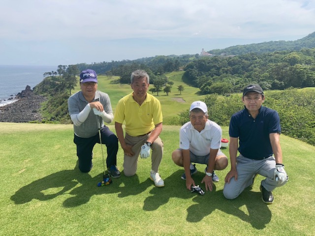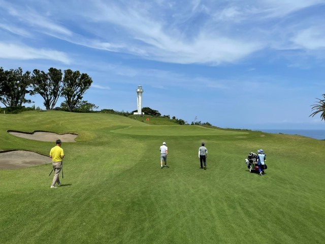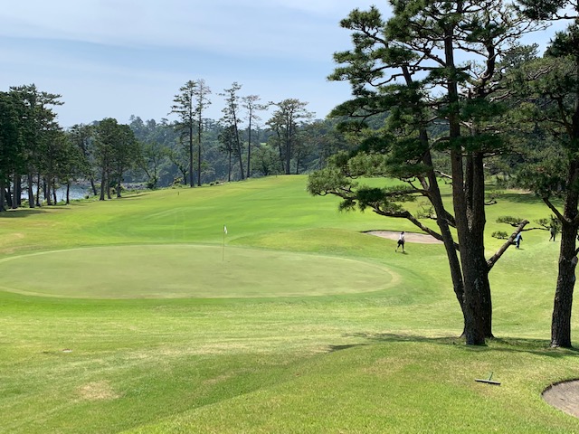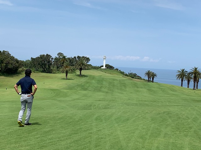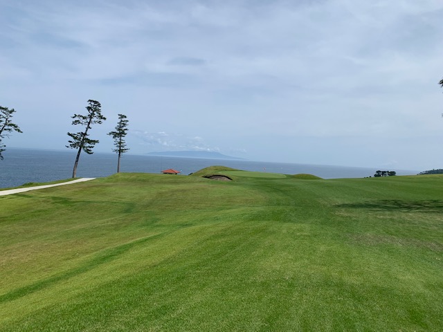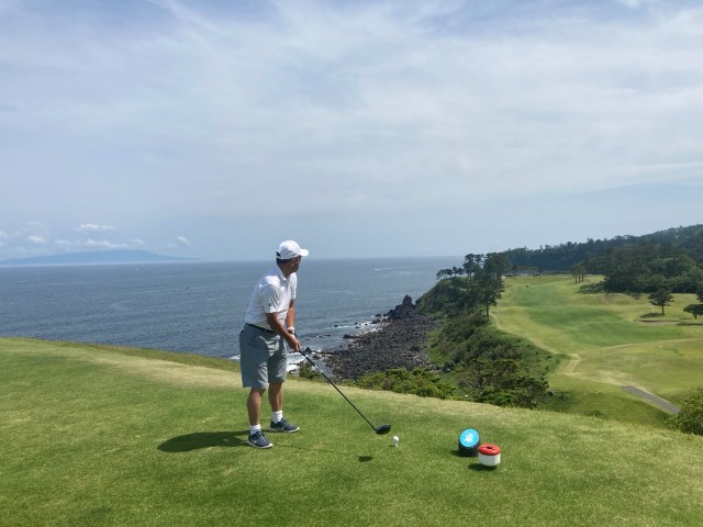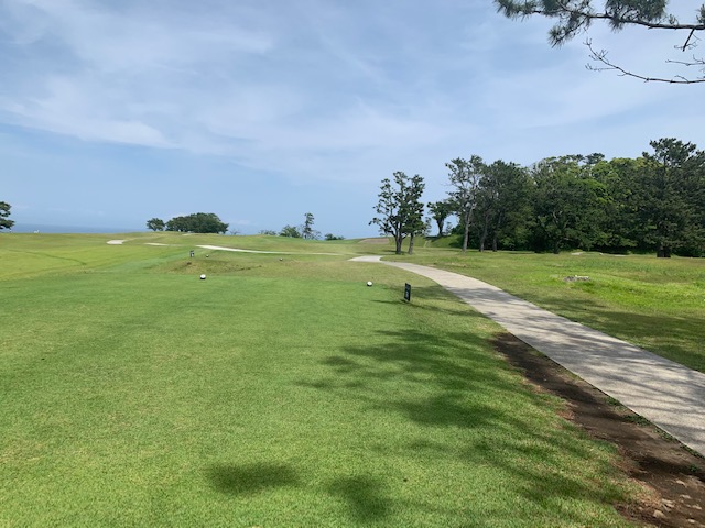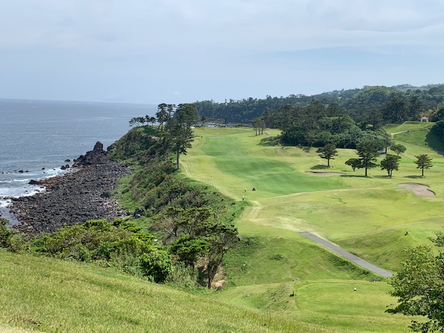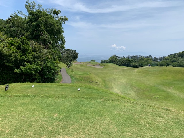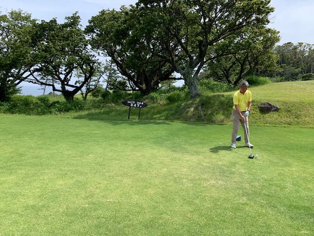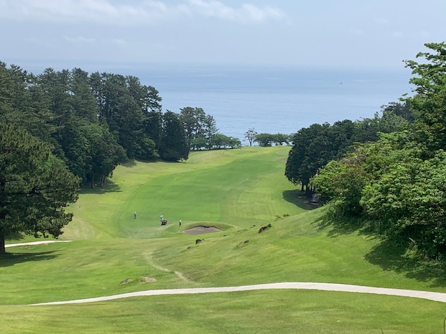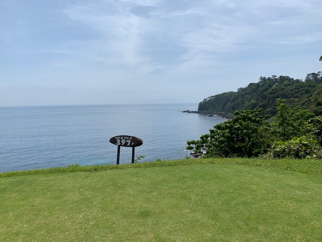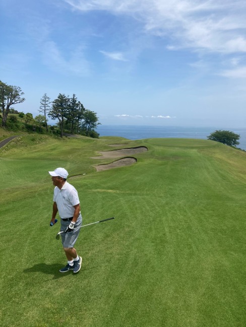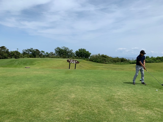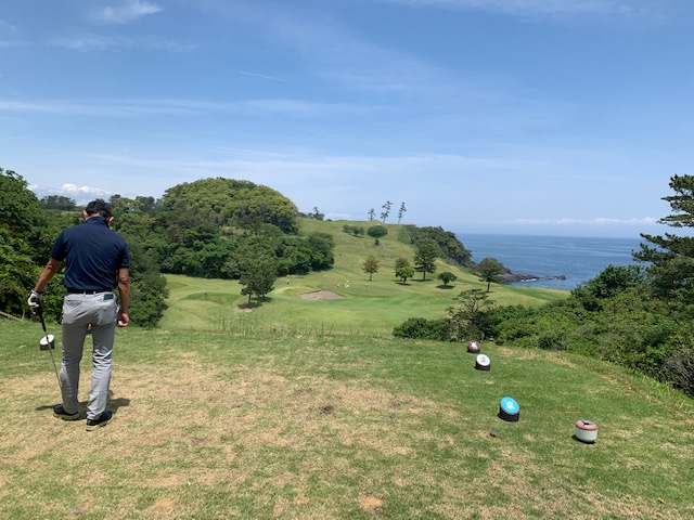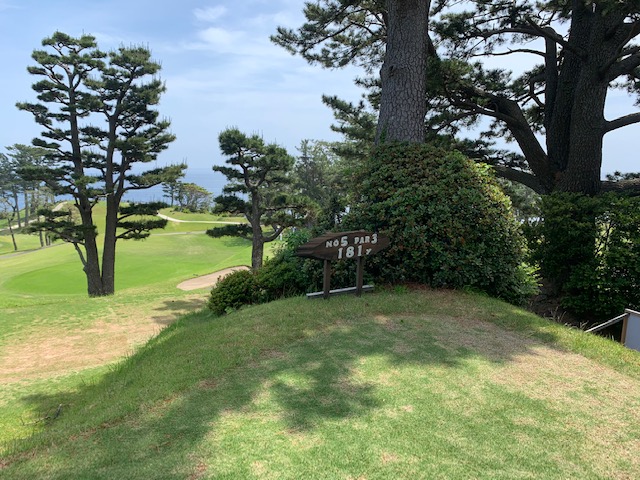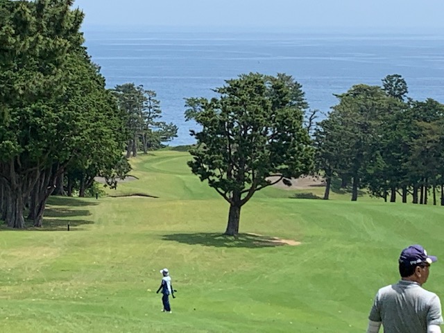 1番409y打ち下ろしミドルは、ドライバーはまずまず。左ラフから6アイアンで打つも左に。あまり寄らなかったがパターが冴えてナイスパー。見事な2オンからS.Mさんが無難にパー。ちなみに今回の川奈ツアーはS.Mさんのふるさと納税でお連れいただきました。ありがとうございます。