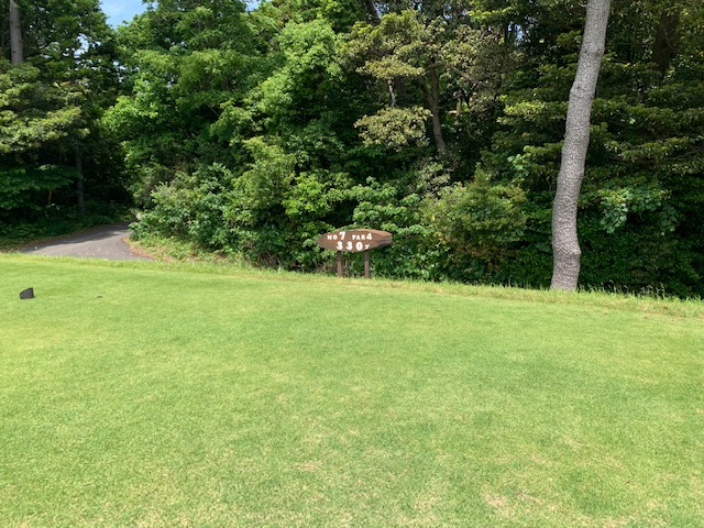 4番468y打ち下ろしロングは、ドライバーは竜巻球。PWで木越えを敢行し、ナイスアウト。PWで3オン。残念パー。しっかり3オンのS.Mさんが無難にパー。
