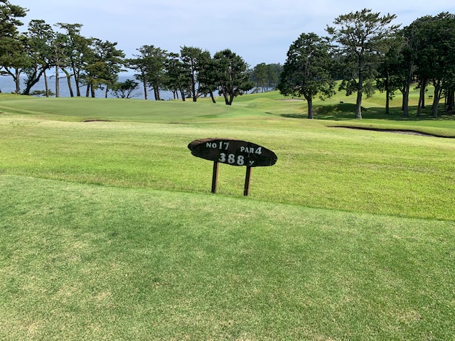 16番172yこれまた日本有数の難しいショートは、25度のuで打ったか5アイアンで打ったか忘れたが右へピュー。ありゃー。56度で打つも届かず。3打目も寄らず入らず。ついにダボ。素晴らしいティショットでカラーに運んでいたJ.Oさんが無難にパー。
