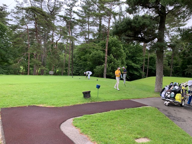 今日は最近入れて頂いたクラブのお仲間であるT.Aさんにお誘いを受けてやって来ました。T.Aさんから「私が6時20分に行って札を4枚取って来ますから」とのお言葉を頂いたので「では、私もその時刻に行きます!」とのことでやって来ました。6時20分の開場とともに1番から4番までの札を頂き、ロビーに。ここで今日ご一緒する東京都の会員さんN.Fさんにご挨拶。その後、6時半の受付開始時に7時58分のティオフタイムをいただき、着替えに行く。で、レストランへ。ハムエッグを食しながら、T.Aさんと二人ミーティング。その後、パター練習をし、アウトスタートへ。ここでもうお一人の東京都の会員さんM.Kさんにご挨拶。