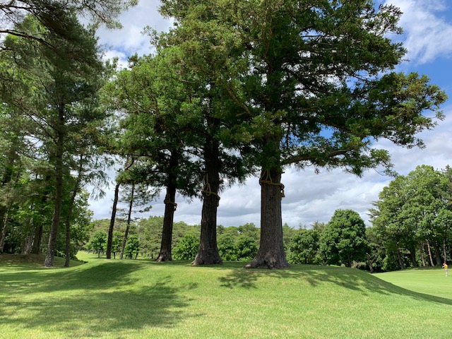 16番530y左ドッグのロングは、ドライバーはフックしてご神木をかすめてその先のラフへ。残り230y上りを3wで打つも右手前の入れてはいけないバンカーイン。出ただけ。オーバー。結局5オンの7となる。バーカ。見事な3オンからT.Aさんが無難にパー。大人の選択!