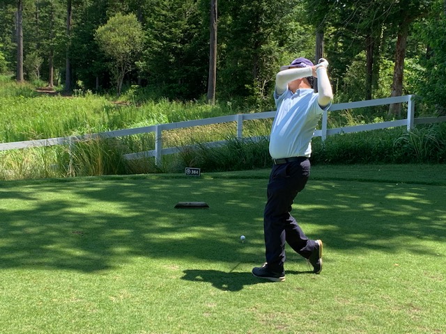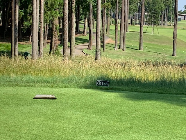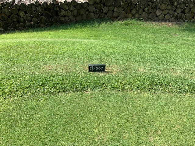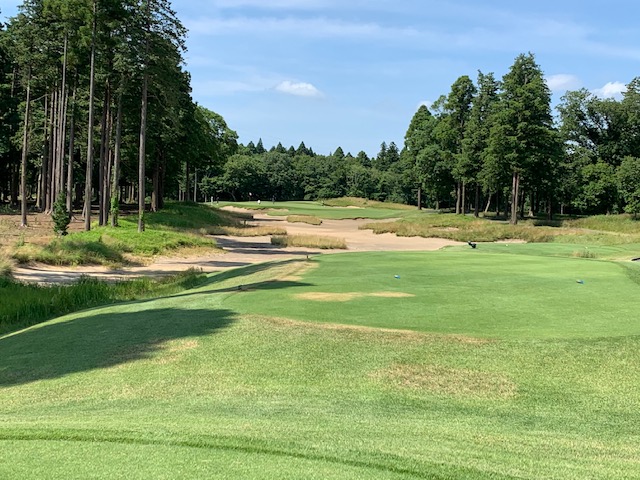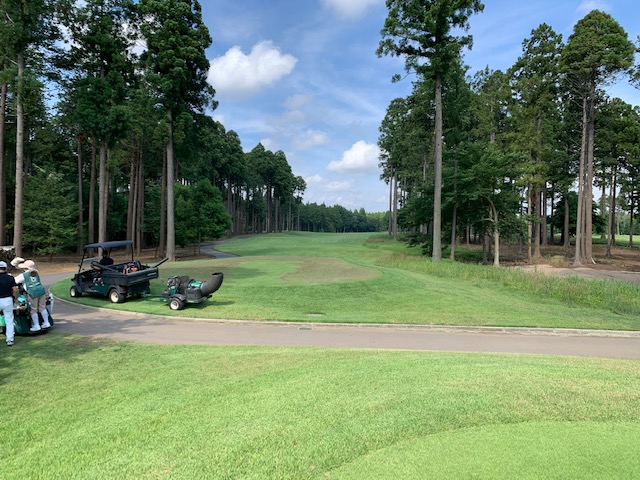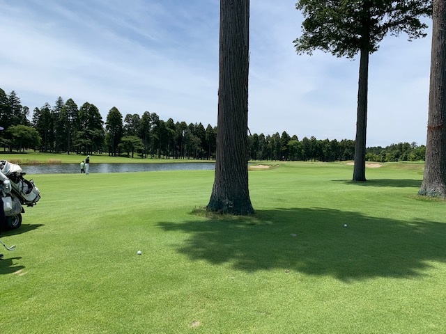 18番578yロングは、ドライバーはナイス。3wで残り88yだが大木あり。52度での転がしで手前15mに。なんとか2パットでパー。 しっかり3オンのS.Mさんも無難にパー。