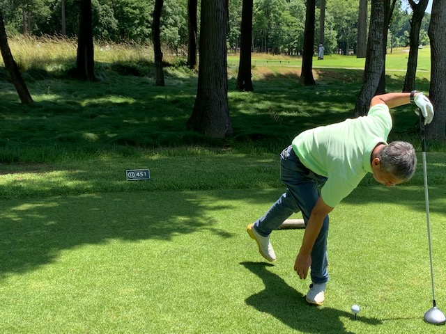 到着後、和朝食をオーダー。恐る恐る尋ねると「大丈夫ですよ」。急にご機嫌になる。パターを転がして、アウトから。後ろの組の方々にもご挨拶。で、今日は黒ティで進行します。皆様、すんません。