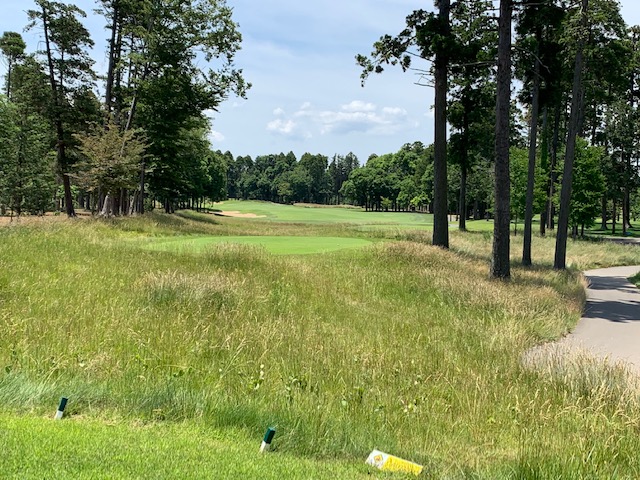 11番451yミドルは、ドライバーは左ラフへ。3uで打つもヘナチョコ球。PWで3オン。ボギー。