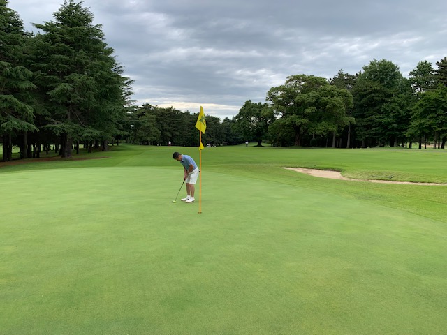 1番524yロングは、ドライバーは右へピュー。3w、4アイアンで花道へ。寄らず入らず。ビッグドライブから見事な3オンでK.Oさんが楽々バーディ。すさまじいね。素晴らしいアプでR.Kさんも難なくパー。1ダウン。